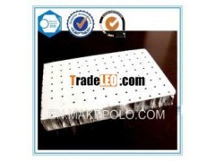 Aluminumhoneycomb panel is composited by aluminum panel and aluminumhoneycomb core. And it was mostly used in astronautics, astrologyand other military field Because of its good performance in highwind pressure resistance, impact adsorption, sound proof, heatpreservation, fire resistance, specific strength etc,